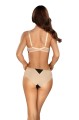Innowacyjny biustonosz został zaprojektowany z myślą o kobietach ceniących głęboki dekolt i efektowne podkreślenie biustu. Wyjątkowo profilowane usztywniane miseczki typu push-up w kolorze beżowym, umieszczone na fiszbinach, doskonale modelują biust, zbierając go ku środkowi i tworząc pełniejszy dekolt. Biustonosz jest wyposażony w regulowane ramiączaka, co podkreśla jego wszechstronność. Z tyłu znajduje się smukłe zapięcie na dwurzędowe haftki z trzystopniową regulacją.